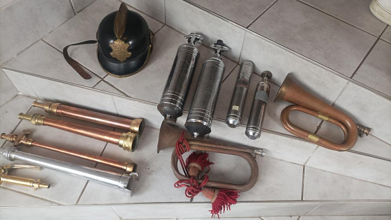 Prodám hasičskou sbírku. Helma 3200 kč, proudnice kus 2800 kč, trubka polnice kus 1900 kč, hasičák 2200 kč, malé hasičáky 1300 kč kus. Tel: 608 400 733