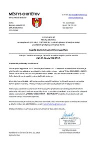 termín podání nabídky. Prodej ihned po schválení zastupitelstvem městyse Chotětov.
