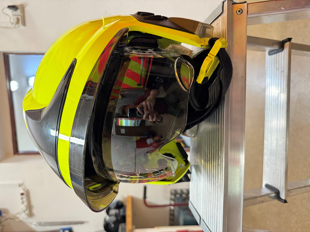 Prodáme lehce používanou přilbu MSA Gallet F1XF se zlatým štítem bez světelného modulu.