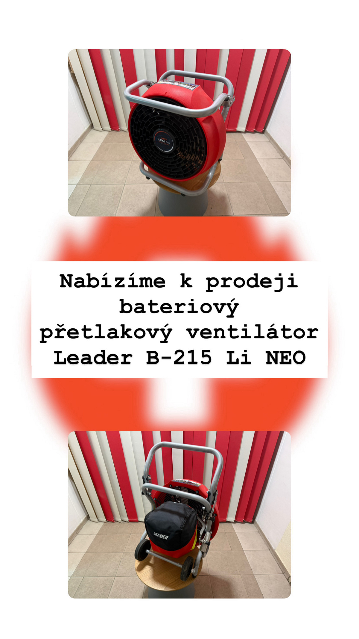 Prodej bateriového přetlakového ventilátoru Leader B-215 Li NEO