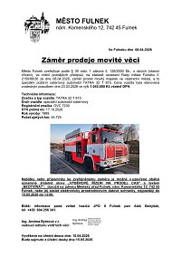 Město Fulnek nabízí k prodeji cisternovou…