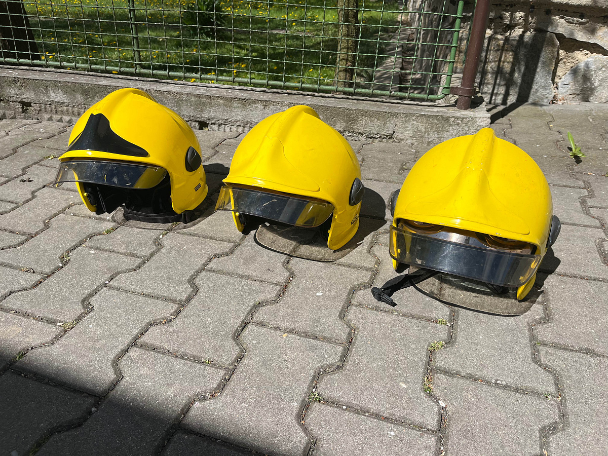 Prodám 3× hasičskou helmu Gallet (žlutá, zlatý…
